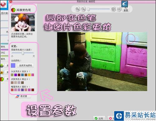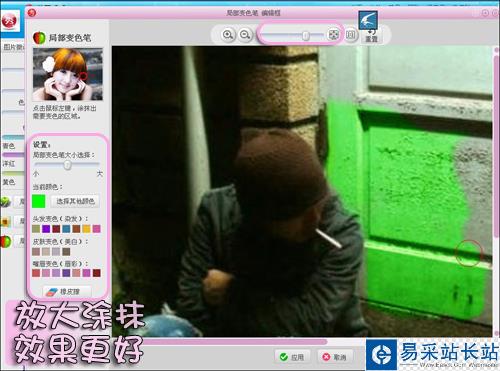 在“圖片處理”標(biāo)簽下,有局部變色筆,可以自定義喜歡的顏色,涂抹就OK了。
