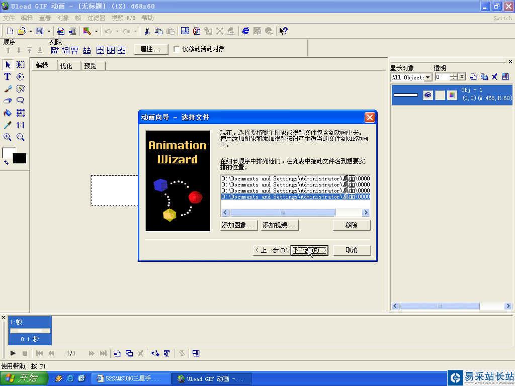 條件:請參考教程一將圖象文件修改成統(tǒng)一的大小,盡量存成JPG格式的,因為咱們做的動畫要往手機里放,越小越好,好了,下面開始吧