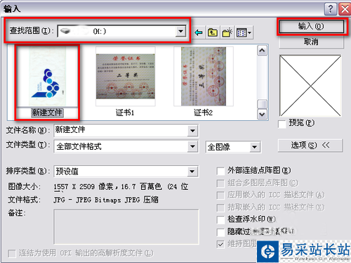 3.在輸入文件對話框中,選擇文件所在的盤,選擇要輸入的文件,點擊輸入按鈕,即可輸入文件