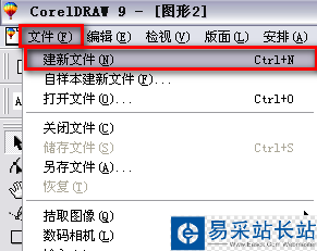 1.進入coreldRAW9的界面,執行“文件---新建”命令,新建一個空白文檔