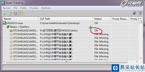 紅圈圈住的位置就是貼圖丟失的意思,如果沒有丟失則是OK或者found