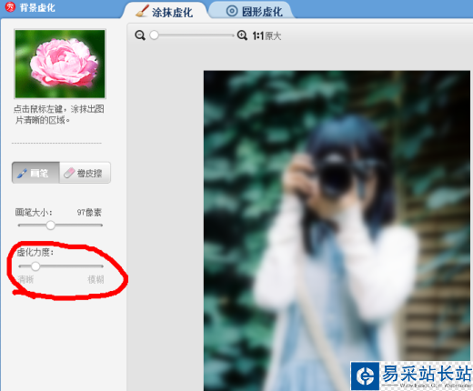 小編個(gè)人覺得系統(tǒng)默認(rèn)的虛化力度有點(diǎn)大,小伙伴們稍微調(diào)小一些就可以了,調(diào)到你覺得合適的地方,點(diǎn)擊確定。