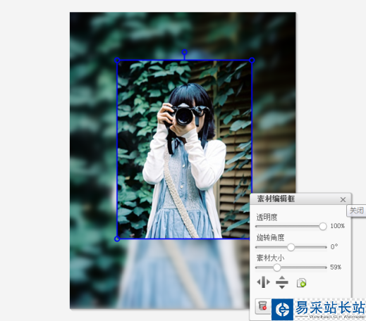做到這里呢,整個(gè)的模糊背景就已經(jīng)完成了。接下來就是插入清晰的那張圖了。看這里。把鼠標(biāo)放到剛剛做的圖上,單擊右鍵,會(huì)出現(xiàn)“插入一張圖片”的提示。點(diǎn)擊提示,插入原來清晰的那張圖,然后自己調(diào)節(jié)大小就可以了。