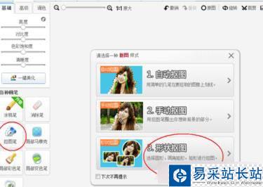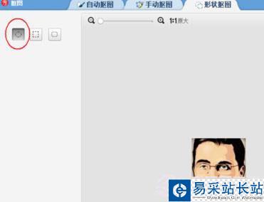 3、接下來我們需要最的便是最關鍵的一步啦,選擇右側畫筆中的“摳圖筆”,我們要摳圓形頭像,選擇第三個“形狀摳圖”。