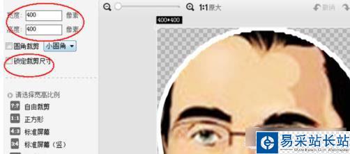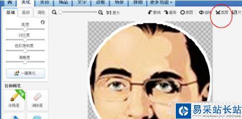 7、這個時候需要裁剪的道具真正派上用場啦,當大家保存好以上步驟的頭像時,我們需要將圖片小角上的圖片裁剪掉,如圖;