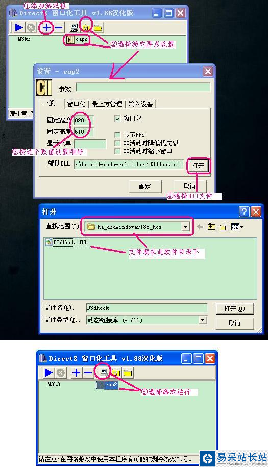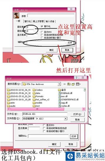 3、在工具中右擊鼠標(biāo)選擇導(dǎo)入的文件,設(shè)置參數(shù)比如窗口大小等,然后在輔助DLL位置選擇剛剛放到游戲目錄中的“D3dHook.dll”文件。設(shè)置完畢后點(diǎn)擊確定