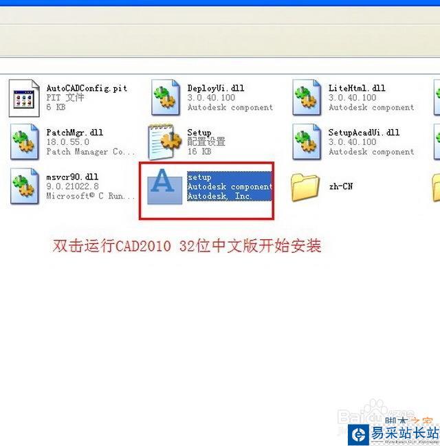 在解壓出來的文件里面找到“setup”安裝程序 雙擊開始安裝CAD2010 32位中文版 如圖二。