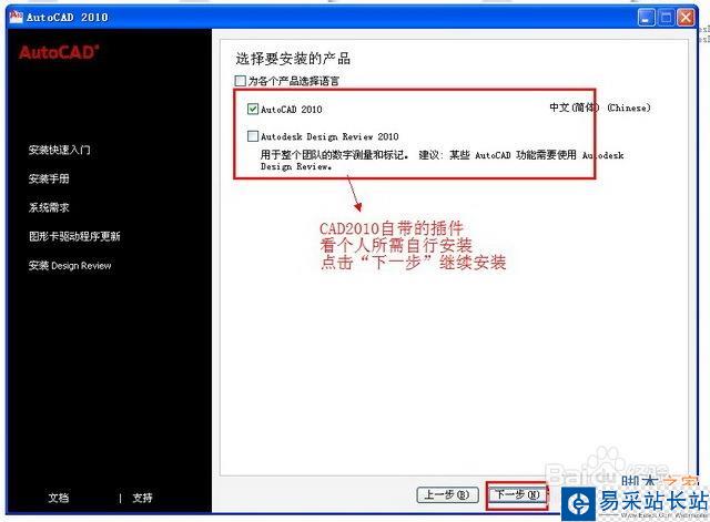 CAD2010 自帶的插件。看個人所需自行安裝 勾選“AutoCAD 2010”點擊“下一步”開始安裝 如圖四。