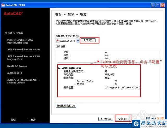 第三步:確認安裝CAD2010