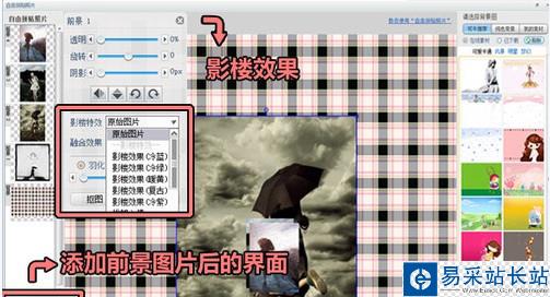 步驟三:選擇你想要的效果,單擊“添加前景”添加你想拼貼的照片