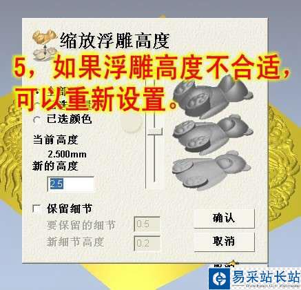 5、如果浮雕高度不合適,可以重新設(shè)置。