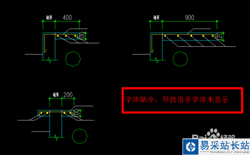 打開的時(shí)候如果出現(xiàn)下面圖片中的情況,就說明你CAD字體不全,紅色圈中就是你CAD字體庫(kù)里所缺少的字體。