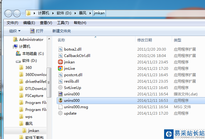 2、我們在他的安裝目錄下找到“unins000”,這個文件,雙擊它。