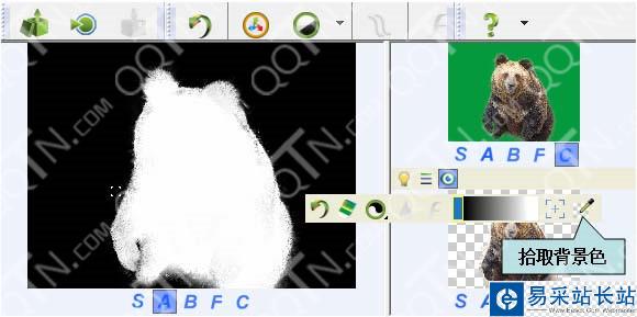 5.繼續添加標記,直到得到一張基本正確的alpha圖。按下V鍵可顯示/隱藏筆刷的痕跡;為了更好地觀察摳圖結果,可使用“拾取背景色”工具改變合成圖的背景色。