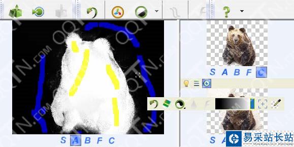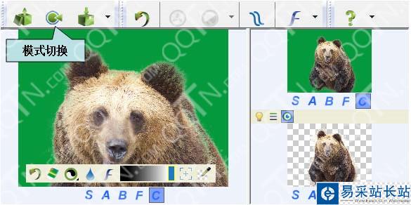 6.點擊模式切換按鈕進入精修模式,此時保存按鈕將變得可用。對于背景比較簡單的情況,通過智能摳圖算法得到的結果已經基本正確。如果您對摳圖質量要求不是很高的話,就可以保存摳圖結果了。