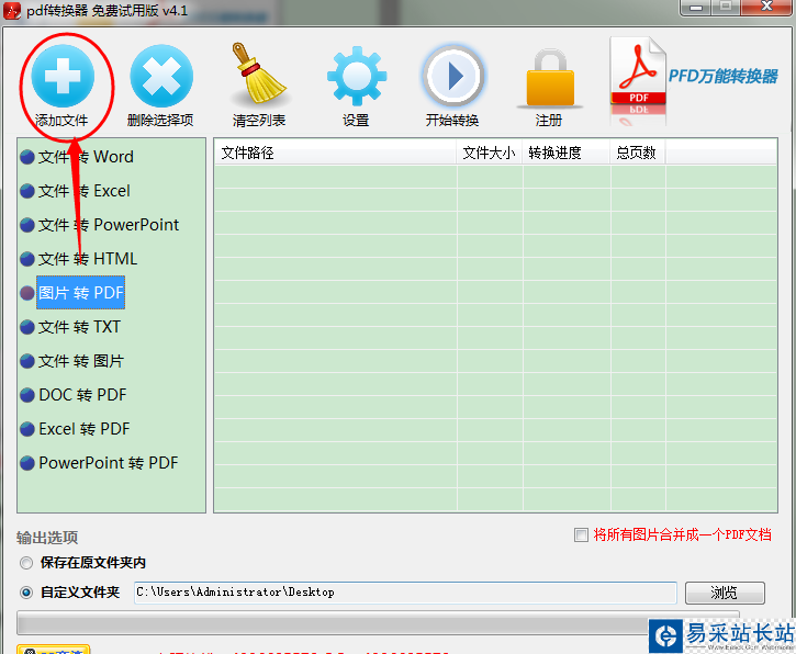 然后選擇所要轉(zhuǎn)換的文件,這里指的是圖片。轉(zhuǎn)換器上方有多個按鈕,其中“添加文件”點擊可以選擇所要轉(zhuǎn)換的文件打開添加到轉(zhuǎn)換器中,添加完成后軟件上會有顯示。