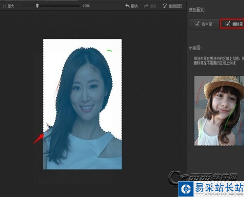 4、如果發(fā)現(xiàn)去掉的包含自己想要的一部分,可用“刪除筆”刪除所選區(qū)域,進(jìn)行恢復(fù),如下圖所示(可對(duì)比上一張圖片)。