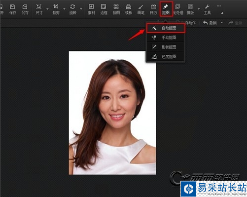 2、點(diǎn)擊“摳圖”功能,在下拉框中選擇“自動(dòng)摳圖”,進(jìn)入摳圖界面。