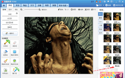 選擇一張你要做出石化效果的圖片,在右側特效欄中找到黑白特效。(圖片原本就是黑白的就忽略此步驟)點擊確定。
