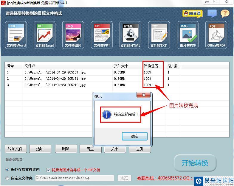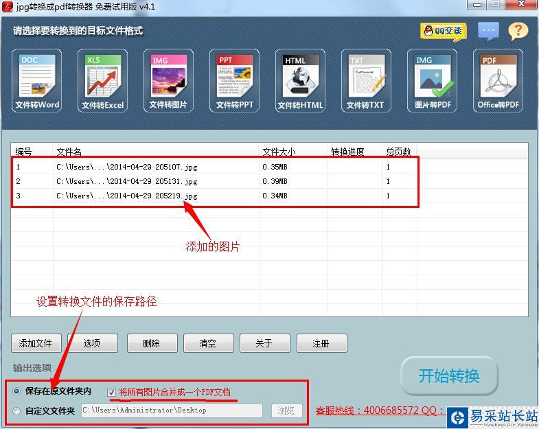 步驟3:設置轉換文件存儲位置,用戶可以將轉換出來的文件保存在原文件夾內,也可以自定義文件夾存儲路徑。這里用戶注意要點選“將所有圖片合并成一個pdf文檔”按鈕,這樣所有的圖片才會生成一個pdf文檔。
