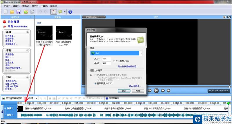 1、首先我們打開camtasia studio將要剪輯的視頻文件導入軟件