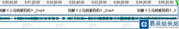 5、由于這里的視頻是含有音頻的,導入的視頻不包含音頻,可以自己添加音頻文件,音頻文件同樣使用拖拽的方法,但是要拖拽到視頻下方的音頻軌道上。如果覺得視頻哪里不需要,需要剪掉,可以先在軌道上選擇區間,隨后點擊工具欄上的小剪刀即可