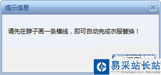 3、接下來就是替換服裝了,在“細節處理”處輕輕一點,在下拉框中選擇“處理服裝”,進入對話框后,選擇一款服裝,軟件就會提示在脖子處畫一條橫線即可自動完成服裝的替換,當然也要進行適當的調整。