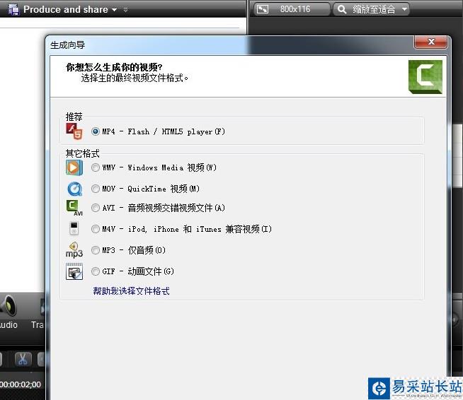 5、編輯完成之后,我們選擇produce and share,可以將視頻轉(zhuǎn)換成自己需要的格式。