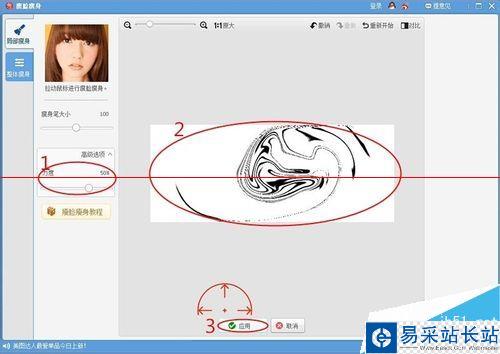 10、點(diǎn)擊“瘦臉瘦身”,重復(fù)步驟八-步驟九,得到素材三。