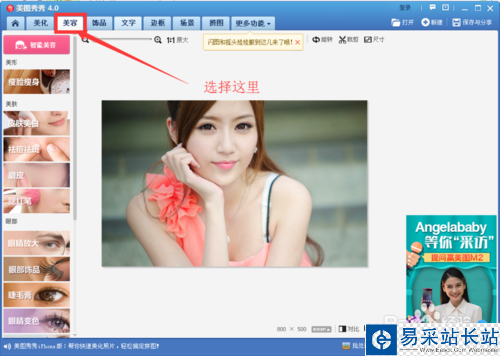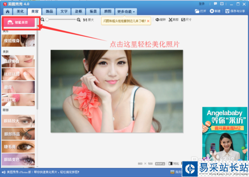3、打開照片后要對照片進行大致的美化,如果是新手的話建議點擊美容→點擊智能美容。