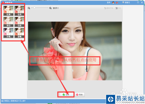 4、這時會彈出一個新的窗口,然后選擇一個適合你的美化方式進行簡單調整→點擊應用。