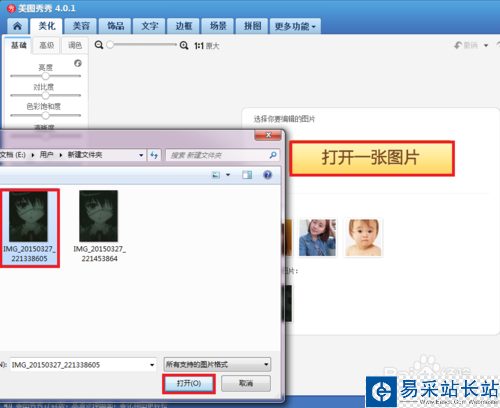 打開一張圖片,選擇你想要編輯的人物圖片,點打開。