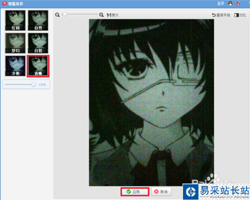 選擇智能美容里的清晰,點擊應用,圖片總算清晰多了,雖然看起來還是很渣的樣子……