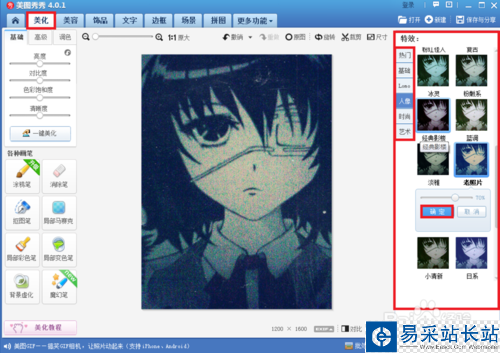 選擇美化里的特效,你可以在眾多特效里給人物自由選擇一個特效,選好后點確定。