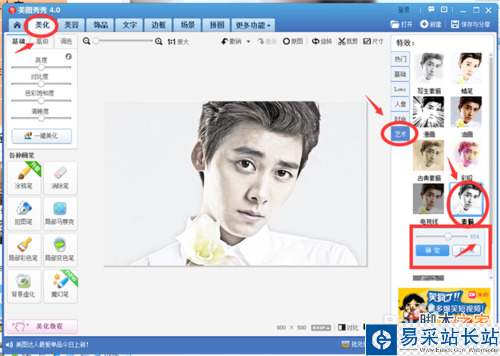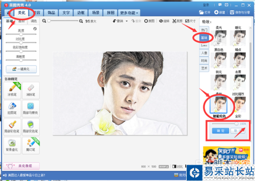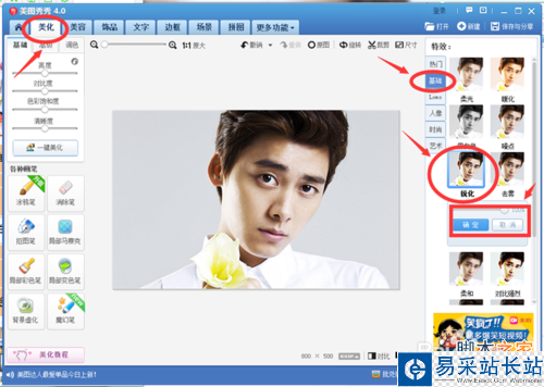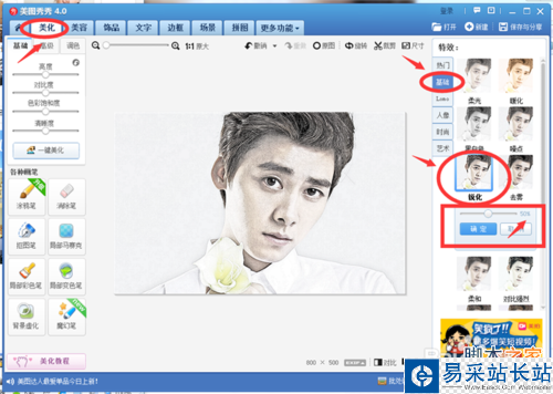 5、選擇“美化”選項下的“基礎”--50%“銳化”;
