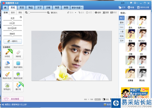 2、在工具欄找到“美化”選項,選擇對其進行“基礎”--100%“銳化”。