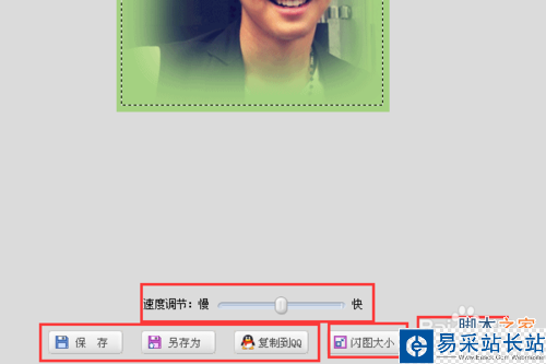 這時我們的圖片就可以看到已經(jīng)再閃了,在下方對閃動速度進(jìn)行快慢調(diào)節(jié),圖片大小也可以調(diào)整,都調(diào)整好后,點(diǎn)擊保存,另存為,或者復(fù)制到QQ都可以將圖片以閃圖方式保存出來。