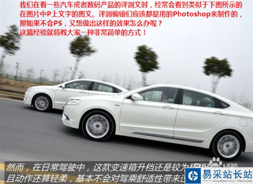 我們?cè)诳匆恍┢嚮蛘邤?shù)碼產(chǎn)品的評(píng)測(cè)文時(shí),經(jīng)常會(huì)看到類似于下圖所示的在圖片中P上文字的圖文。評(píng)測(cè)編輯們應(yīng)該都是用專業(yè)的Photoshop來(lái)制作的。