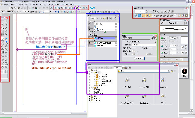 圖中標示的是常用的面板,熟悉PS等繪圖軟件的人應該能很快熟悉上手。 其中自定義工具塊,曾經我覺得沒有用,現在覺得很好用。把一些常用的筆刷啊、橡皮啊什么的,放在這里,不用每次都去tools里面翻找。 此外,圖層面板的布局和ps不一樣,不是單純按圖層分類,而是按功能分為幾部分(見圖)