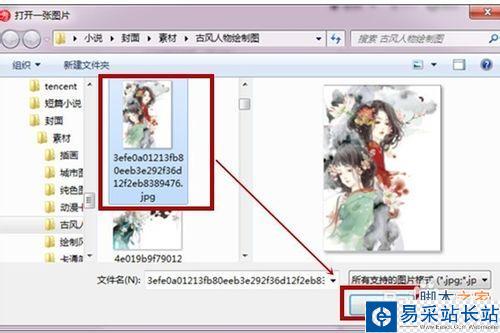 這里進入自己放圖的文件夾,選擇適當的圖片,然后點擊”打開“