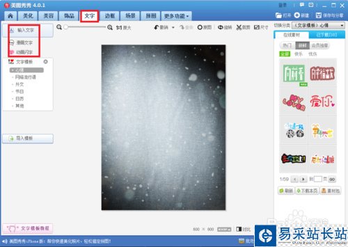 在文字編輯框里,輸入你想寫的話。然后設置字體,大小,樣式,透明度,顏色等等……