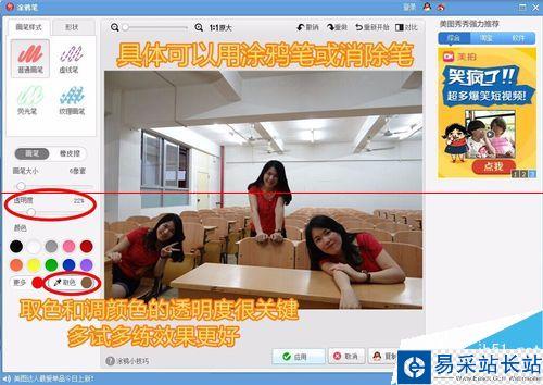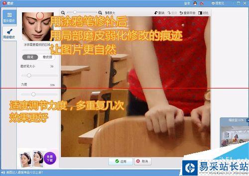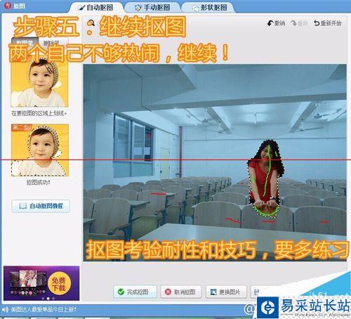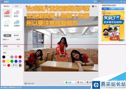 4、兩個(gè)人還不夠熱鬧,可以繼續(xù)添加,步驟跟前面一樣。注意修繕過渡不自然的部分可以用涂鴉筆、消除筆以及磨皮筆進(jìn)行。當(dāng)然,一鍵美化也不是不行