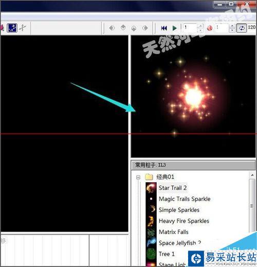8、然后在粒子上點(diǎn)擊右鍵打開它的屬性對(duì)話框。當(dāng)然也可以在它左邊的粒子上點(diǎn)擊一下,再用右鍵點(diǎn)擊。這時(shí)候也可以在它彈出的列表中找到它的屬性對(duì)話框。