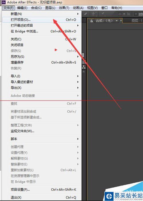 2:選擇 文件 -> 打開項目 命令,打開項目文件