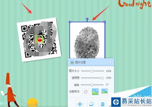 5、這樣的兩張圖片就加載完成了,進行調整兩張圖片的格式,只要雙擊圖片,進入到了圖片設置的窗口中,進行把旋轉設置為0。