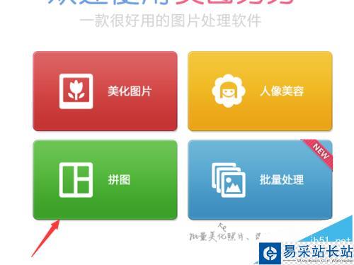 3、然后進行使用美圖秀秀進行合并兩張圖片,進行打開美圖秀秀,進入到界面中,點擊“拼圖”的選項。