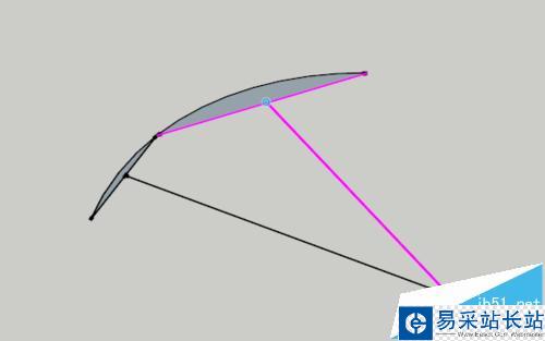 3、但是很多時候,su中的圓弧是cad中畫的,所以弧為斷線,用上一種方法可能找不到。找到圓心的方法為先在圓弧上畫兩條線
