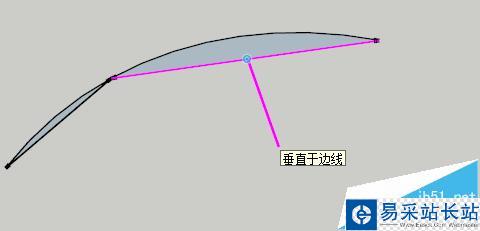 4、然后分別點擊這兩條線的中心,移動線的位置,直到你畫的線變成粉色。這條粉色線即為垂線
