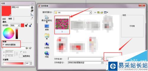 5、點(diǎn)擊編輯,將使用紋理圖像勾選中,之后會(huì)彈出來(lái)一個(gè)選擇圖像圖框,選擇你要自定義的圖片,打開(kāi),如圖所示