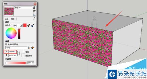 6、你會(huì)看到這個(gè)剛才填充紅色的面變成了自定義的材質(zhì)